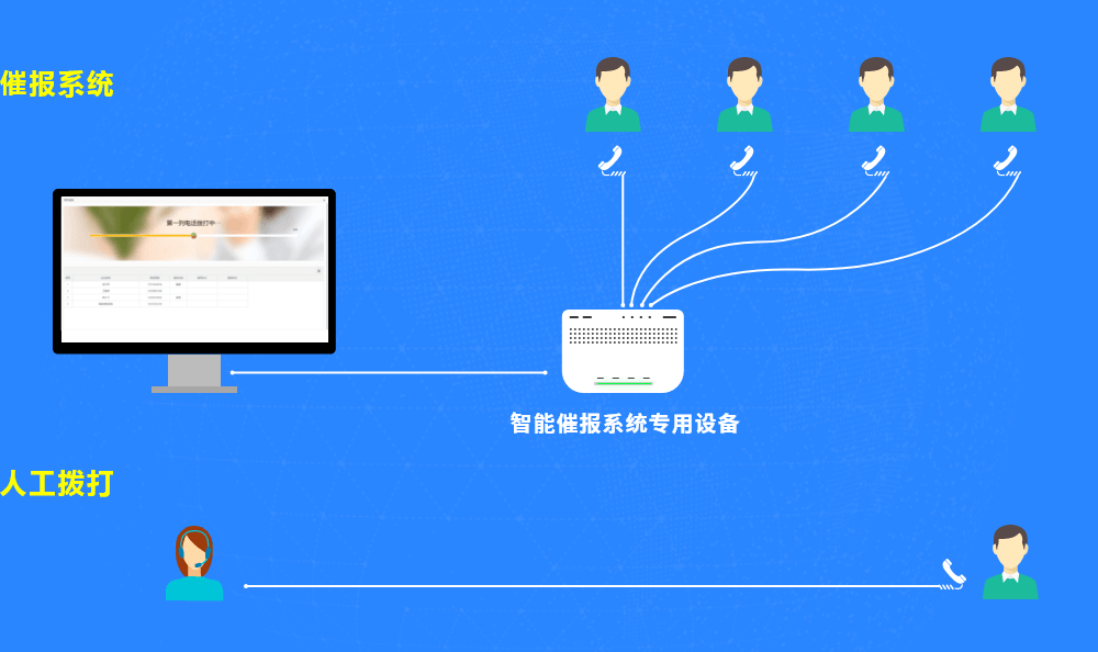智能催报是指可以通过系统实现在自动拨打电话的同时,可以使用“智能语音”形式将需要向纳税人播报的内容讲出来,利用语音模板技术,可根据企业名称、联系人姓名等动态变化,在电话接通时可以使纳税人接听电话时更加能够明确知道,这是“与我有关”的消息内容。